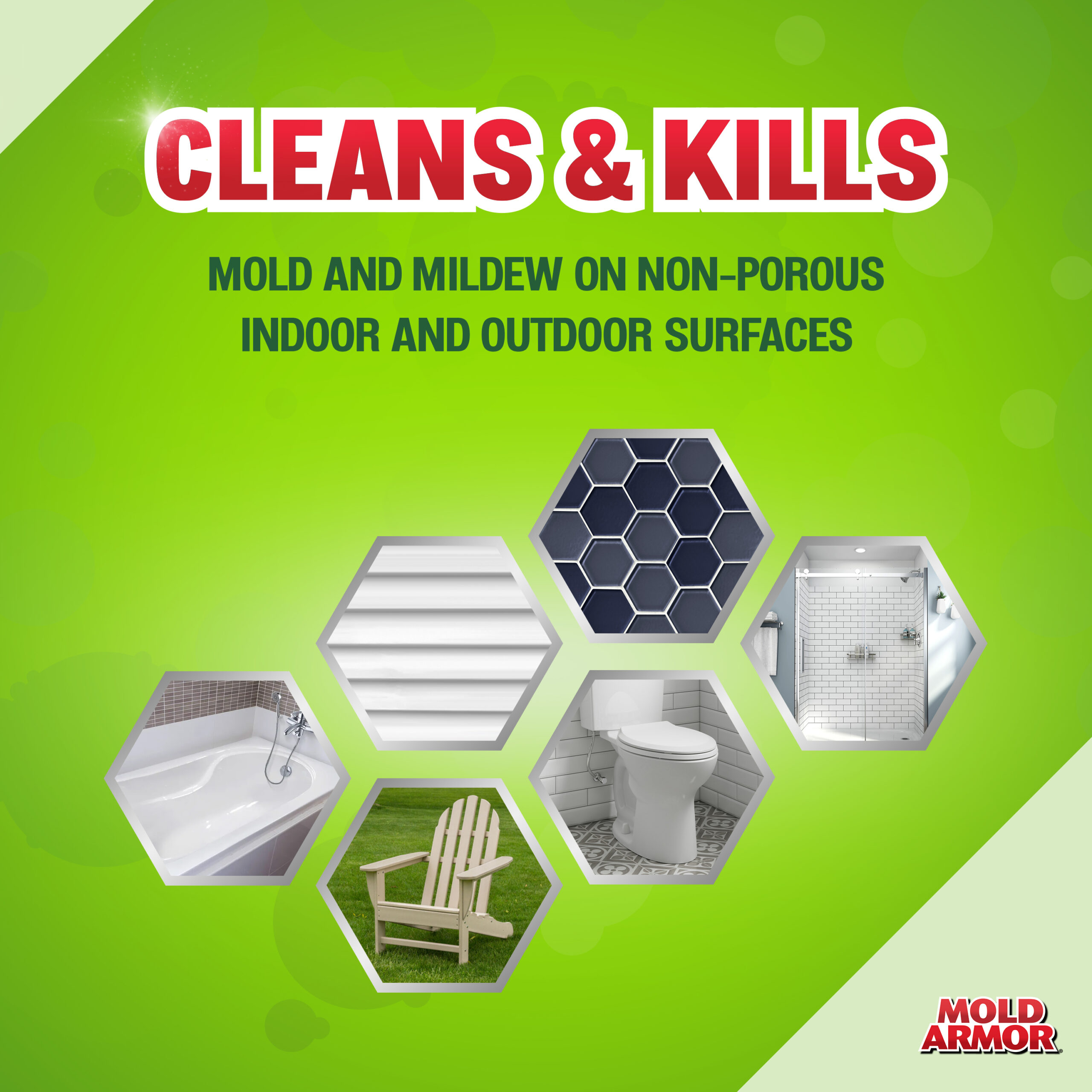 MOLD ARMOR Mold and Mildew Killer + Quick Stain Remover kills mold, mildew, bacteria, and viruses.